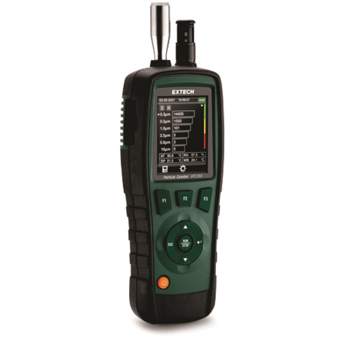 The VPC260 is a 6-channel particle counter for monitoring workplace environmental health and quality. Measure up to 6 channels of particle sizes plus air temperature, relative humidity, dew point, and wet bulb. Check indoor air quality for exhaust, smoke, respirable crystalline silica dust (RCS), airborne combustible dust, and other harmful air pollutants.