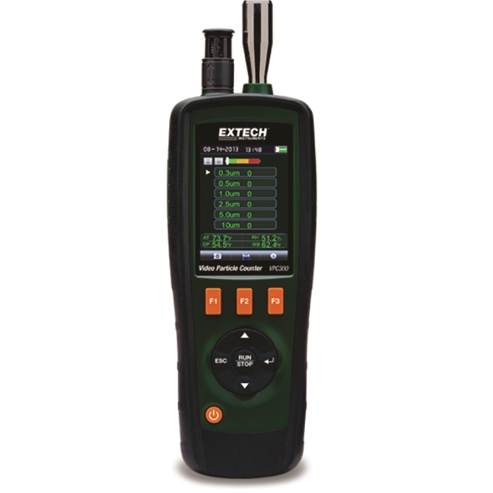 The VPC300 is a Video Particle Counter with built-in Camera. Measures up to 6 channels of particle sizes plus air temperature and relative humidity. Used for capturing videos and photos that are stored onto internal memory or a micros card. The VPC300 can measure up to 6 channels of particle sizes plus air temperature and relative humidity. Use the included software to generate reports with videos, photos and data points. Complete with NIST-traceable calibration certificate, Universal AC Adapter/Charger with multiple plugs, USB cable, PC software, tripod, filter, 7.4V NiMH battery and a hard, protective case.